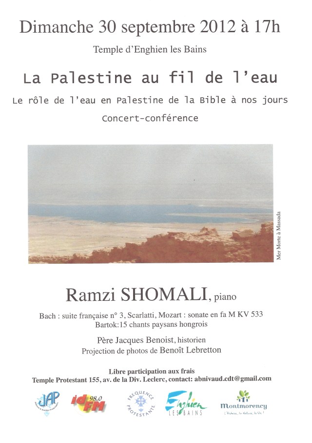 Avec le pianiste Ramzi Shomali et l’historien Père Jacques Benoist sur le « Rôle de l’eau en Palestine depuis la Bible jusqu’à nos jours » .