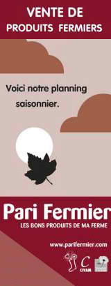 Des centaines de produits fermiers vous seront proposés : charcuteries, viandes, foie gras et magrets, lapin, gibier, volailles, escargots, fromages, produits laitiers, jus de fruits, sirops, confitures, fruits et légumes, miels…