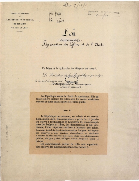 De quelle année date la loi de séparation de l’Eglise et de l’Etat ?