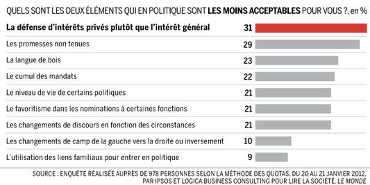 On ne saurait mieux dire que les proclamations solennelles en faveur d’une « République irréprochable » n’ont pas convaincu. Quant aux nombreux conflits d’intérêts qui ont émaillé la chronique gouvernementale dans les années récentes (de l’affaire Woerth-et autres épisodes amoureux), il ne fait guère de doute qu’ils ont contribué à creuser la défiance des citoyens.