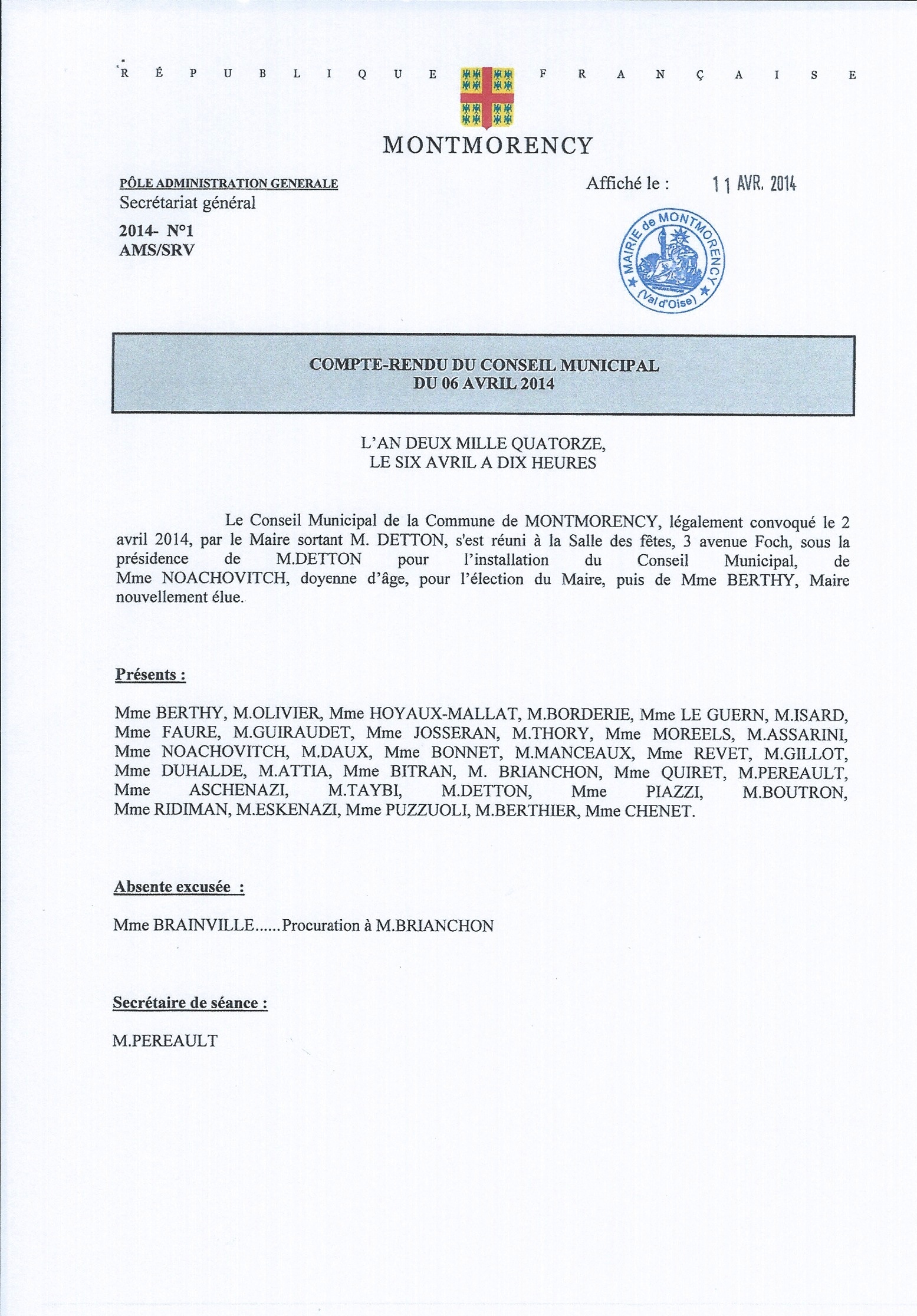 Conseil Municipal du 11 Avril 2014