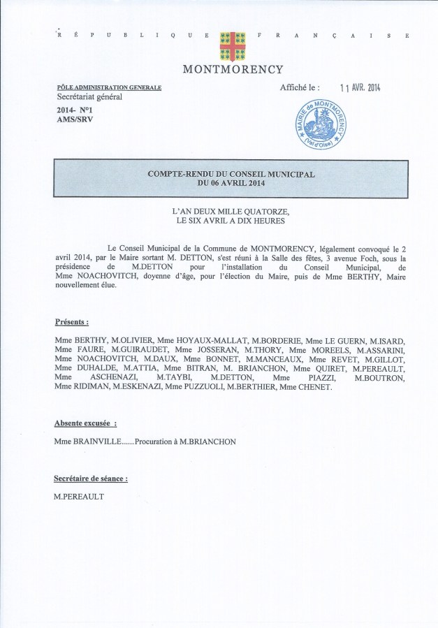 Conseil Municipale Avril 2014