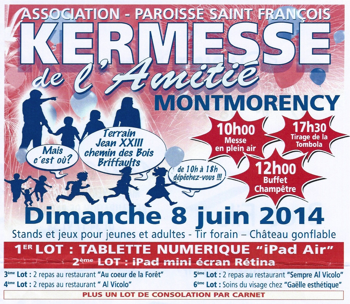 La kermesse de l’amitié ( la 47 ème) c’est partager un moment convivial. Elle aura lieu sur le terrain Jean XXIII, chemin des Bois Briffaults à Montmorency