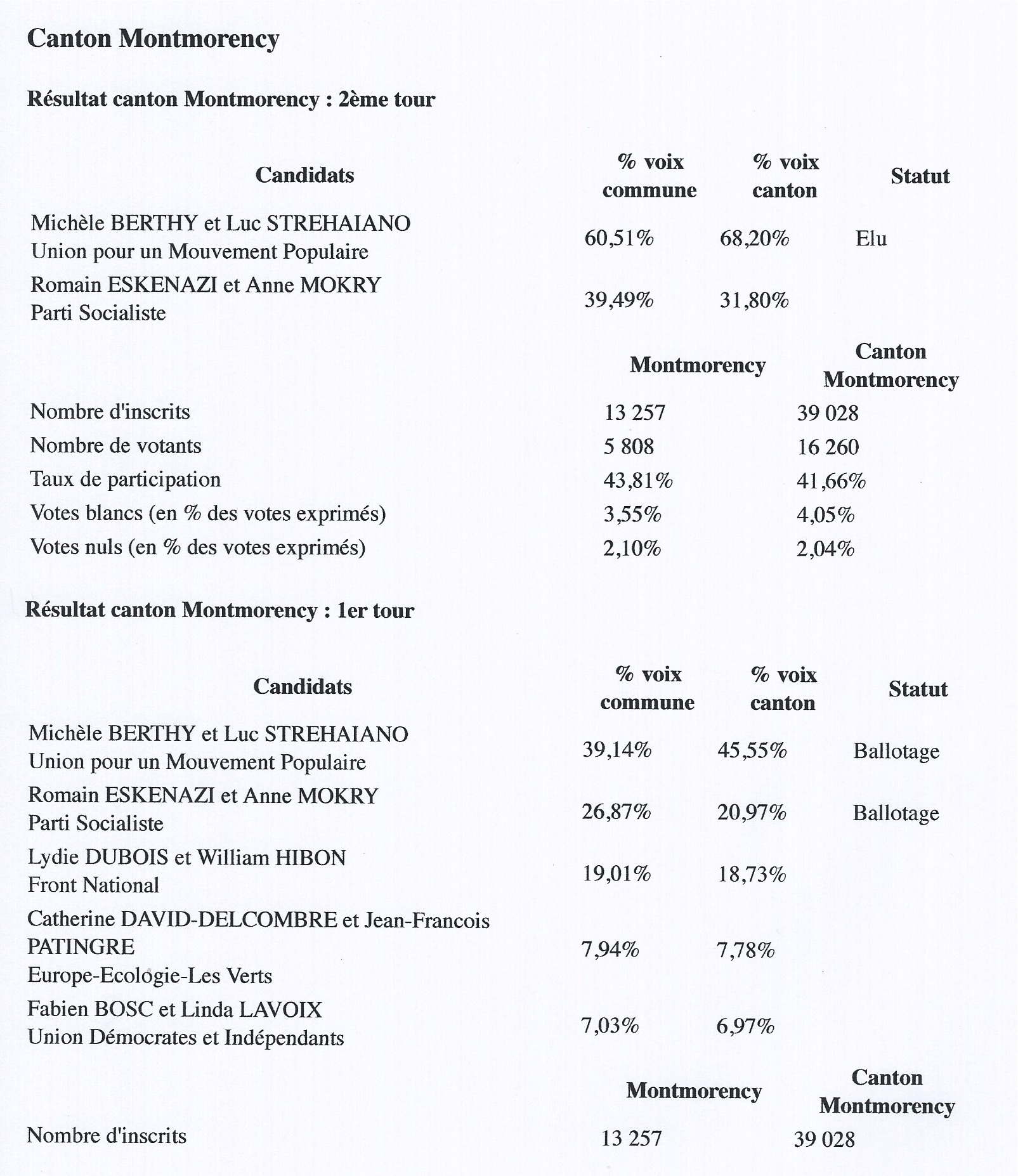Participation : 1er Tour : 45,83 – 2 ème Tour : 43,81 %