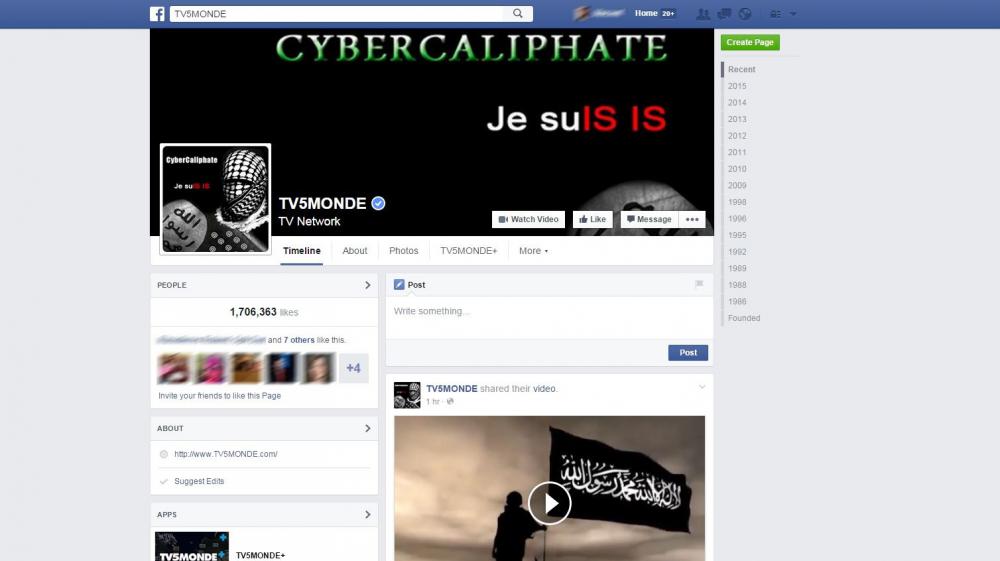 « L’attaque a commencé peu après 22 heures sur les réseaux sociaux, et très vite, notre système informatique interne est tombé, comme toutes nos antennes mondiales », précise Hélène Zemmour, directrice du numérique de TV5 Monde, contactée par francetv info. Après près de deux heures, les équipes de la chaîne ont pu reprendre la main sur la page Facebook, le compte Twitter et le site mobile de TV5 Monde.