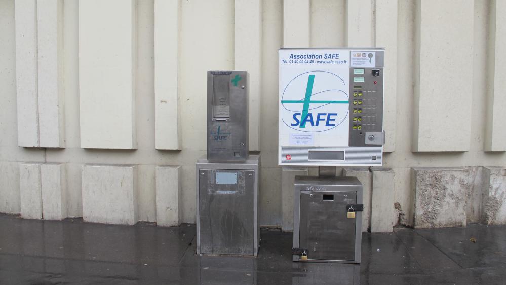 Le distributeur de kit d’injection installé rue de Maubeuge, à Paris, le 2 avril 2015. (Source France TV Info)