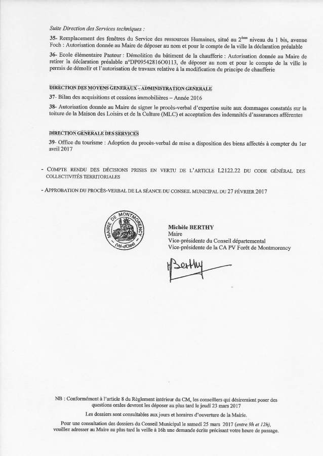 Montmorency – Conseil municipal – lundi 27 février