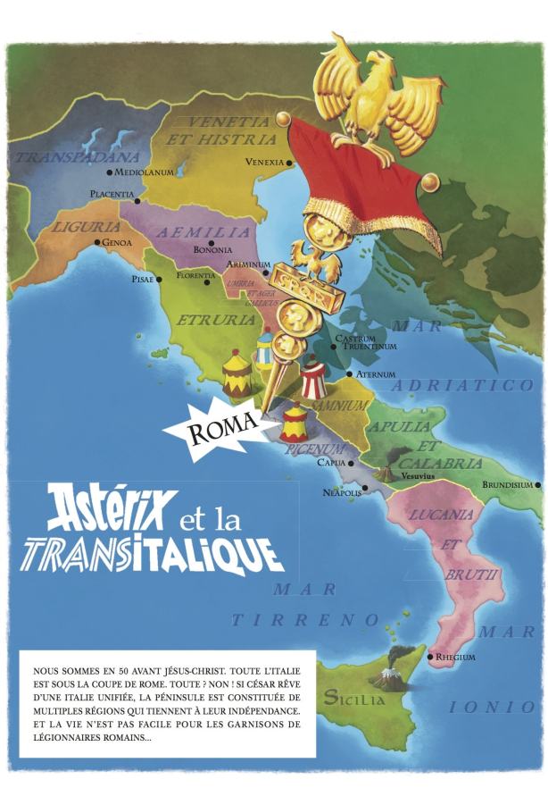 N’en déplaise à Obélix, les Italiques, les habitants de l’Italie, ne sont pas tous des Romains, au contraire ! Les Italiques tiennent à préserver leur autonomie et voient d’un mauvais oeil les velléités de domination de Jules César et ses Légions. Dans Astérix et la Transitalique, nos héros favoris s’engagent dans une aventure palpitante à la découverte de cette surprenante Italie antique !