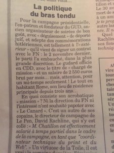 Marine Le Pen, elle, « ne lâche pas ses amis ». Chatillon, c’est un « copain. Ce n’est pas un conseiller politique, c’est un très bon professionnel », assurait-elle.