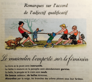 La mode de l’écriture inclusive, qui consiste à ponctuer les noms communs de leur déclinaison féminine (« les libéraux·ales », par exemple), ajouterait un élément comique bienvenu aux dissertations universitaires si elle ne prenait pas le chemin de devenir une politique officielle : un manuel de CE2 inclusif est ainsi promu sur le site du secrétariat d’Etat à l’Egalité entre les femmes et les hommes.