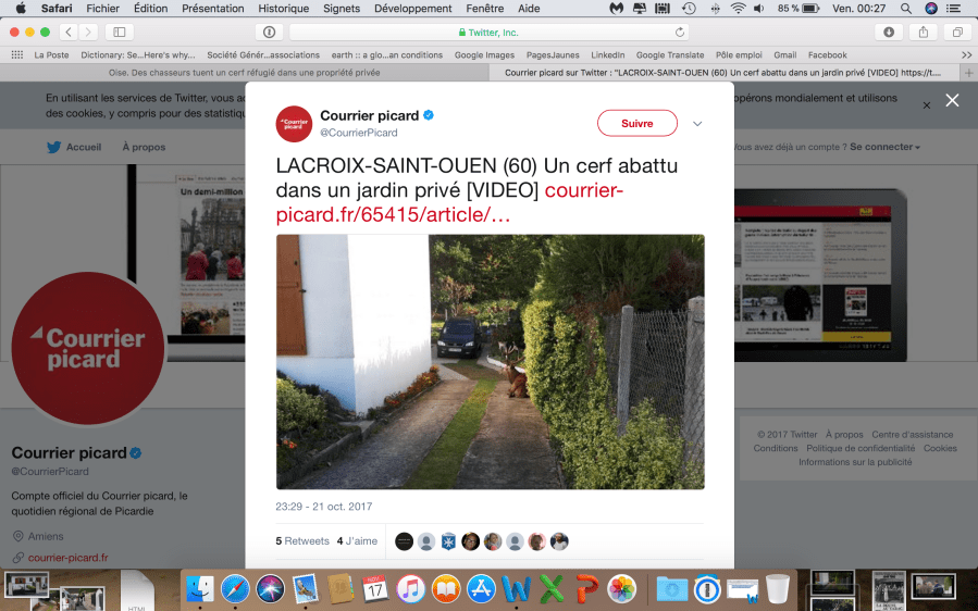 Un cerf abattu dans le jardin d’un particulier ! Un scandale