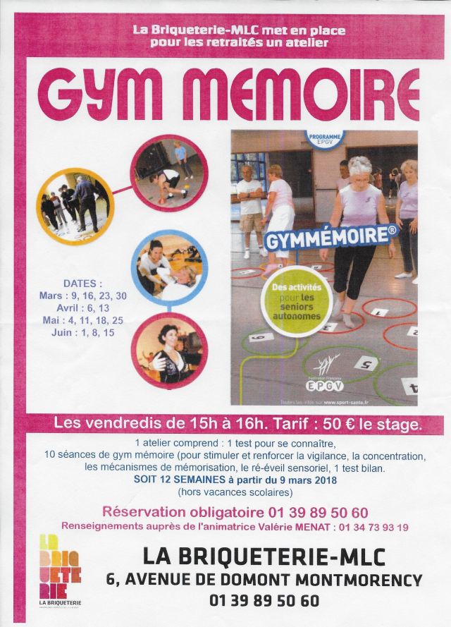 Qu’est ce que Gym Mémoire-Equilibre ? C’est un cours où sont associées des activités permettant de travailler la mémoire et l’équilibre.