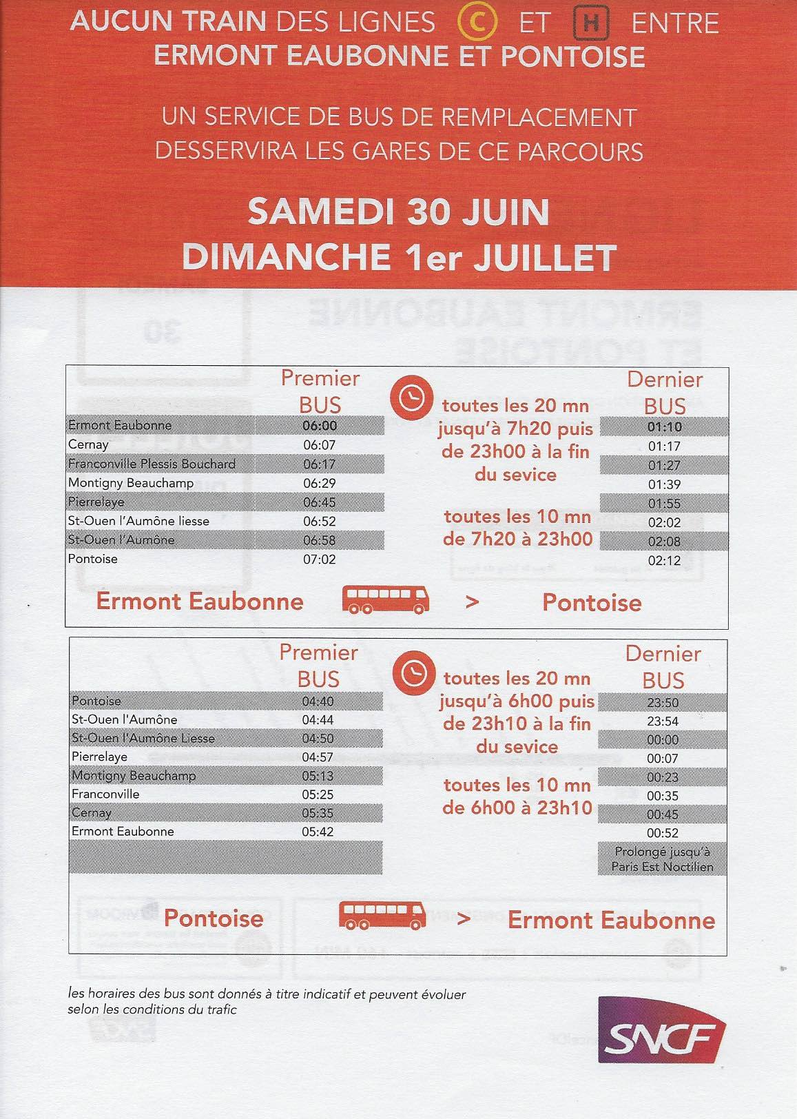 Transilien ligne H week end 30 juin / 1er Juillet