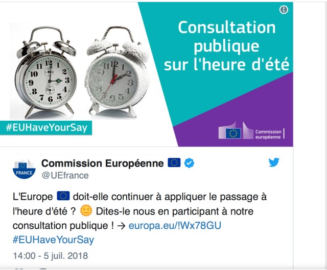 Au mois de février, les parlementaires européens ont voté une résolution pour évaluer l’efficacité du mécanisme. En conséquence, la Commission Européenne a lancé une consultation en ligne pour recueillir l’avis des citoyens européens sur le changement d’heure. Le questionnaire est accessible jusqu’au 16 août.