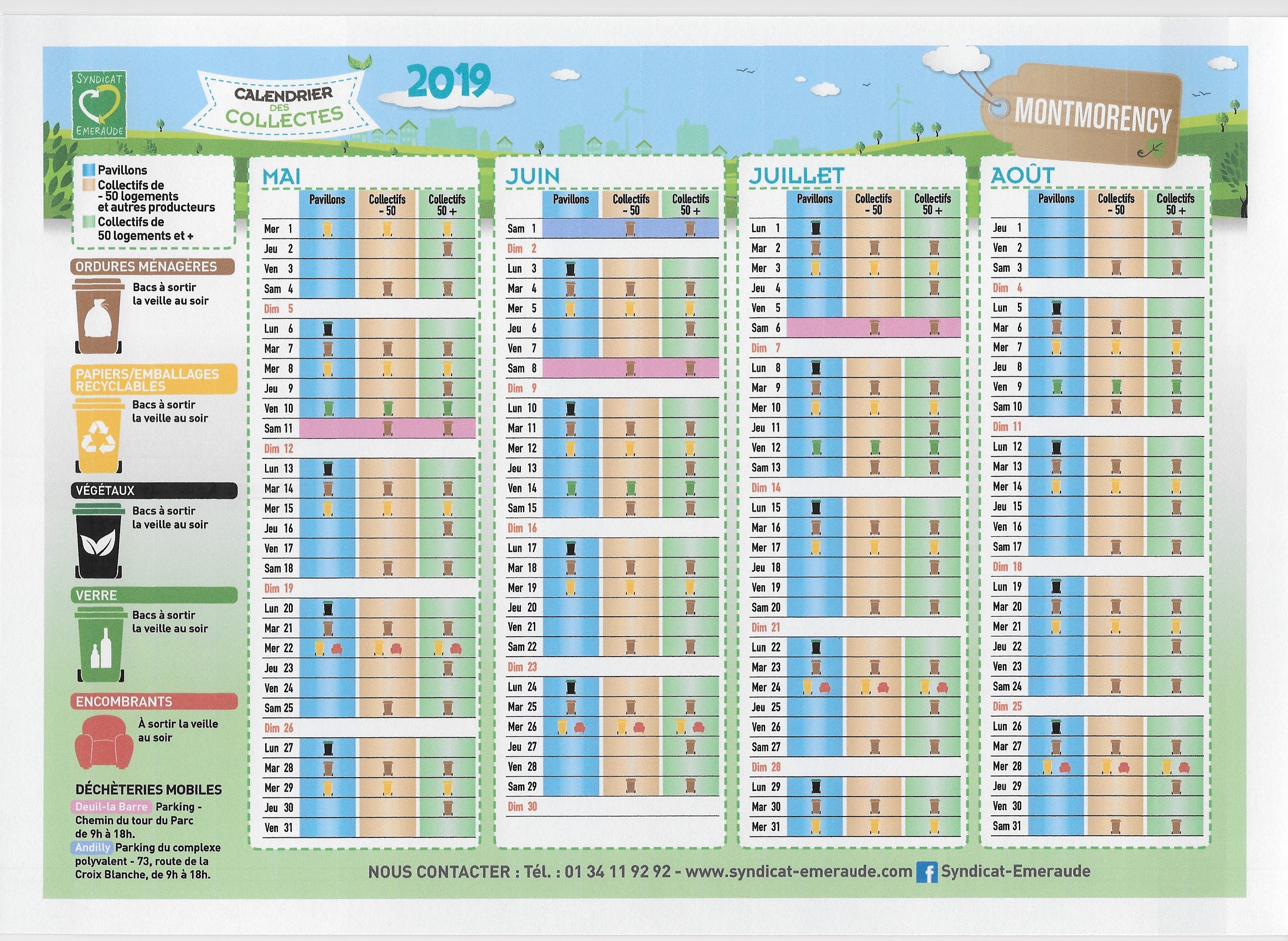 Emeraude: Calendrier de collecte 2019