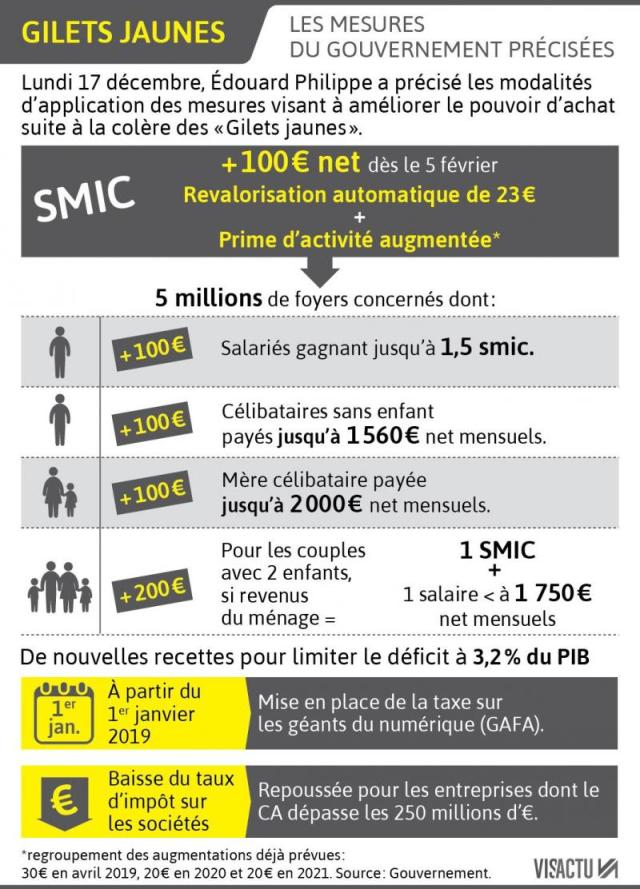 Face à la crise, Emmanuel Macron a dégainé plusieurs mesures de soutien au pouvoir d’achat. « C’est une réponse pleinement assumée, que j’ai voulue, à ce que j’ai considéré être la demande juste, la colère juste du peuple français », a déclaré le chef de l’Etat lors d’une conférence de presse au Tchad dimanche. Mais le mouvement, en baisse pendant les fêtes, pourrait reprendre à la rentrée. La mise en placedu prélèvement à la source, fin janvier, pourrait relancer la grogne. « Cette histoire n’est pas finie », juge ainsi un conseiller du chef de l’Etat dans le Monde.