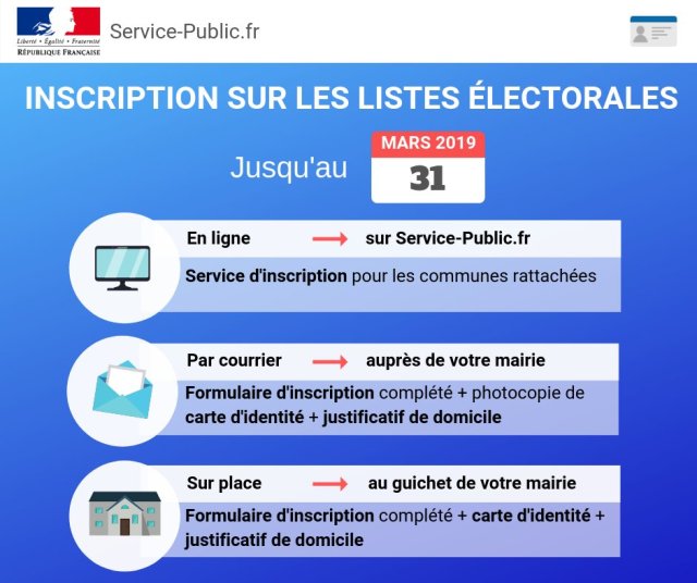 Pour voter aux Européennes du 26 mai 2019, pas besoin de vous précipiter pour vous inscrire sur les listes électorales d’ici au 31 décembre de l’année précédent un scrutin comme cela était le cas auparavant. Cette démarche est désormais possible jusqu’au 31 mars 2019.