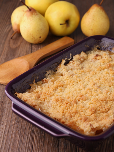 Un crumble aux pommes et aux poires.