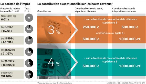 En sus, la contribution sur les hauts revenus s’applique éventuellement aux taux de 3 % et 4 %.