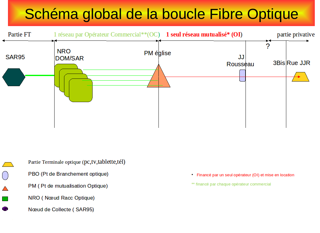 Le réseau de distribution s’arrête au niveau de cette chambre. A partir de là, on parle d’adduction puisque c’est la dernière étape avant le raccordement de la fibre à l’immeuble où un point de de mutualisation (PMI) est installé dans le sous-sol (en zones très denses).