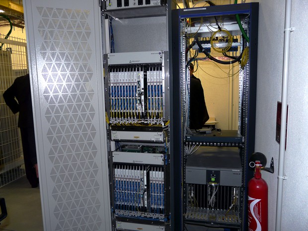 A l’instar du central téléphonique où sont centralisées les paires de cuivre du réseau commuté (RTC) et les équipements ADSL (DSLAM), le central optique regroupe les câbles de fibre optique déployés par Orange et le terminal de ligne optique (OLT).